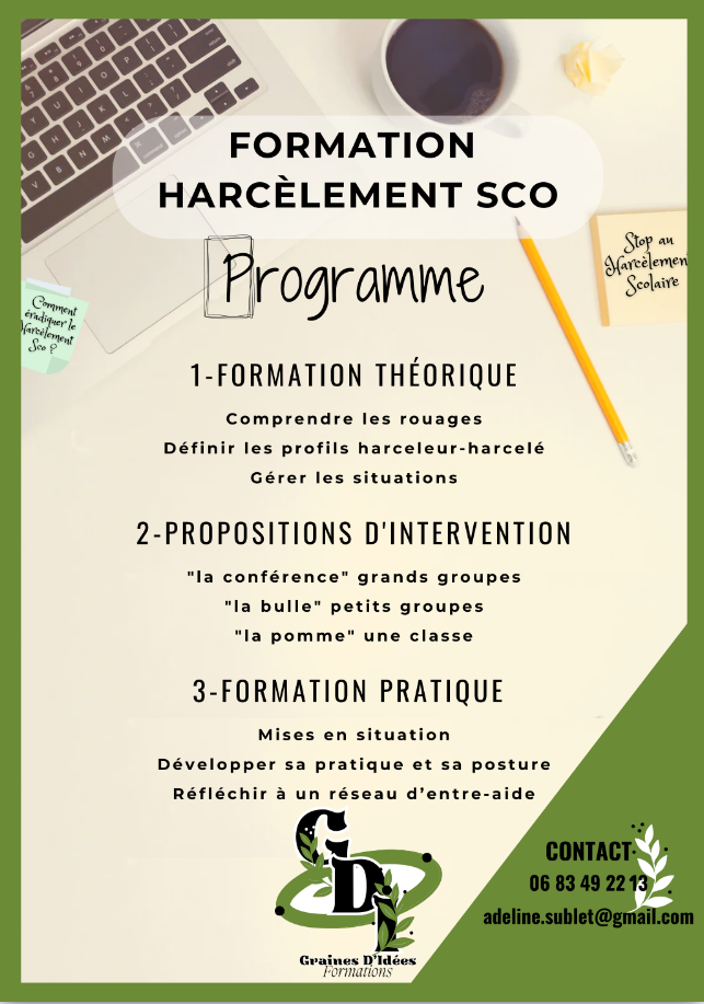 Avec une boîte à outils à la sortie, les apprenants seront en mesure de proposer eux-mêmes des interventions de qualité pour donner le change aux harcèlements...